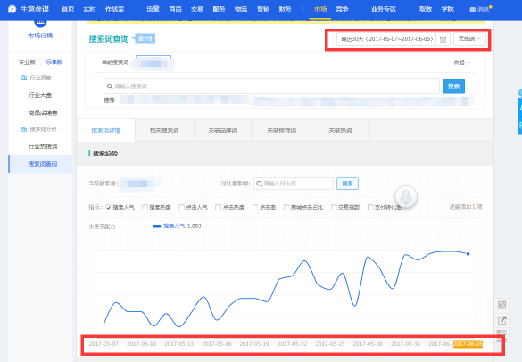 搜索热度(市场-搜索词分析-搜索词查询)